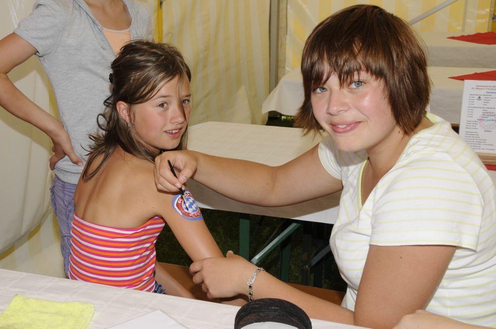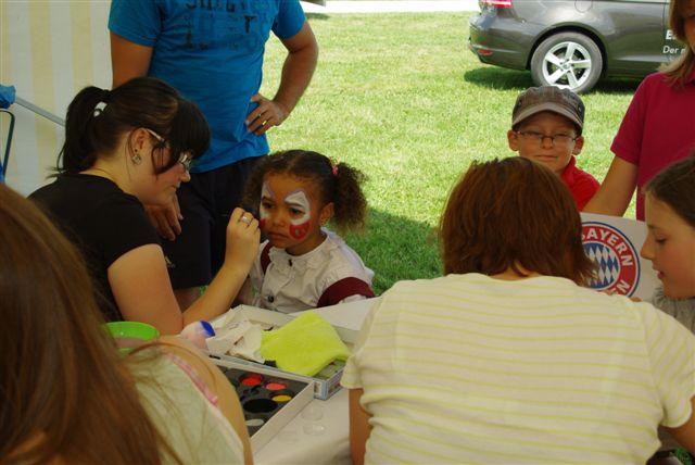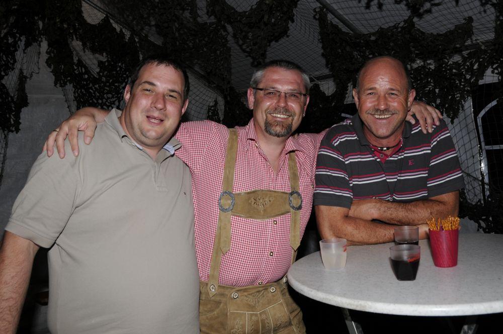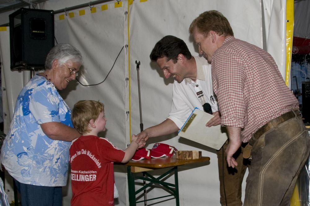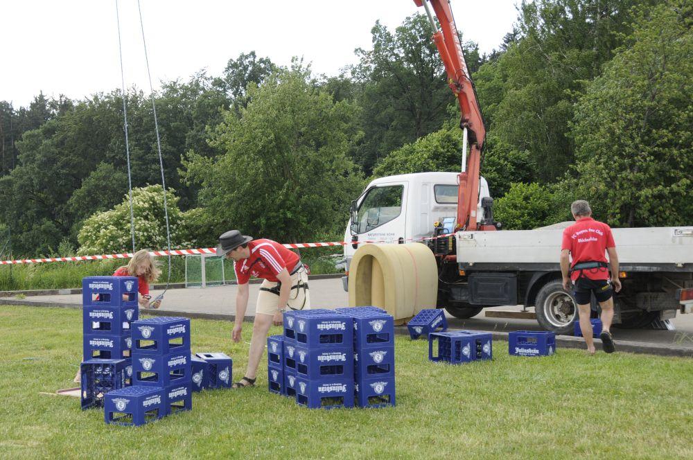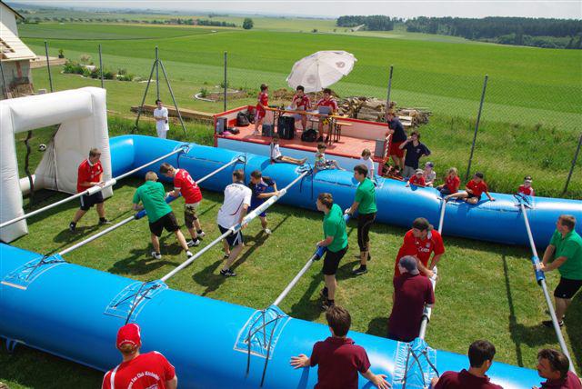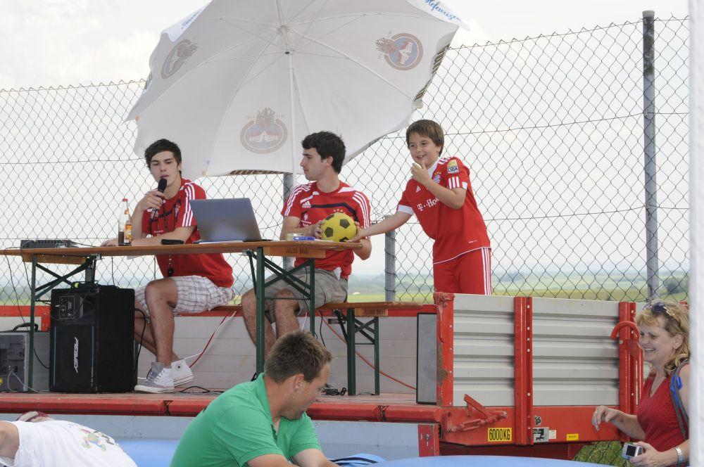 Das Bierkastenstapeln erforderte bei gesichertem Aufstieg viel Übung und Kunstfertigkeit. Antonia Hiermeier siegte hier mit 26 gestapelten Bierkästen knapp vor ihrem Onkel Josef Hiermeier (25 Stück) und ihren Brüdern Kilian (25 Stück) und Valentin (24 Stück). Die Vorstände Frank Schmidt und Christian Meier hatten beim Holzstammsägen als Vorgabe ein Stück mit 949 Gramm vorgelegt. Nun mussten die Teilnehmer möglichst nahe an dieses Gewicht herankommen. Christoph Meyer und Daniel Fuchs gelang dieses Kunststück bis auf 10 Gramm auf 939 Gramm. Es platzierten sich weiter Florian Meier und Maria Geitner mit 925 Gramm und Kevin Schmidt und Roland Schmidt mit 919 Gramm. Das Torwandschießen war ein weiterer Renner. Über 50 Personen versuchten hier ihr Können. Daniel Fuchs gewann mit 2 Treffern nach Losentscheid vor Benjamin Reinl und Tobias Stark (beide ebenfalls 2 Treffer). Hart umkämpft waren beim Menschenkickerturnier die Positionen.