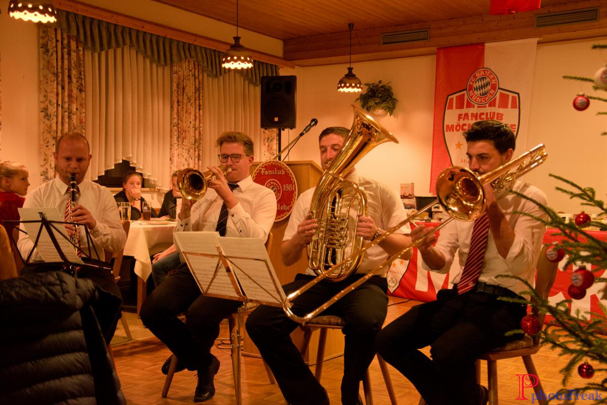 Die diesjährige Weihnachtsfeier war am 07.12.2019 im Vereinslokal Meyer in Möckenlohe. Den Anfang machte die Vorstandschaftsmusi die einige besinnliche Weihnachtslieder spielte, der 1. Vorsitzende begrüßte die rund 100 Mitglieder im festlich geschmückten Saal. Danach folgte ein Essen welches jedem Mitglied ausgezeichnet schmeckte. Der nächste Punkt war die große Verlosung, ein herzliches Dankeschön an alle Betriebe die hierfür Sach- und Wertpreise zu Verfügung gestellt haben. Ein Schinkenschätzen stand als nächstes auf der Agenda wobei einmal das Gewicht des Schinkens ermittelt wurde und einmal der kleinste einmal abgegebene Wert. Die Siegerehrung des Nikolauskegelns wurde ebenfalls am heutigen Abend bekannt gegeben wo sich der 2. Vorsitzende Daniel Fuchs bei den Herren und Monika Meier bei den Frauen durchsetzen. Abgerundet wurde der Abend mit Stollen und Lebkuchen sowie einer Versteigerung hochwertiger FC Bayern Artikeln. Sellinger bedankte sich bei allen die etwas zu dieser schönen Weihnachtsfeier beigetragen hatten und wünschte den Anwesenden Mitgliedern und ihren Familien eine schöne Weihnachtszeit und ein Frohes Fest.